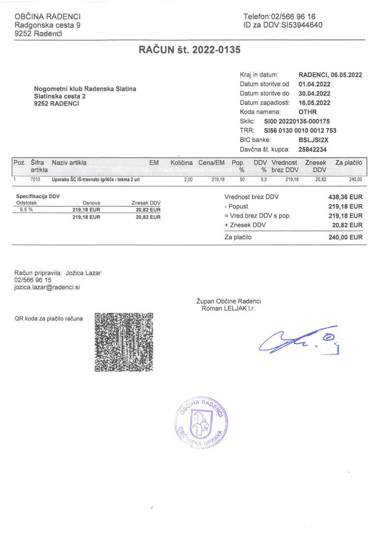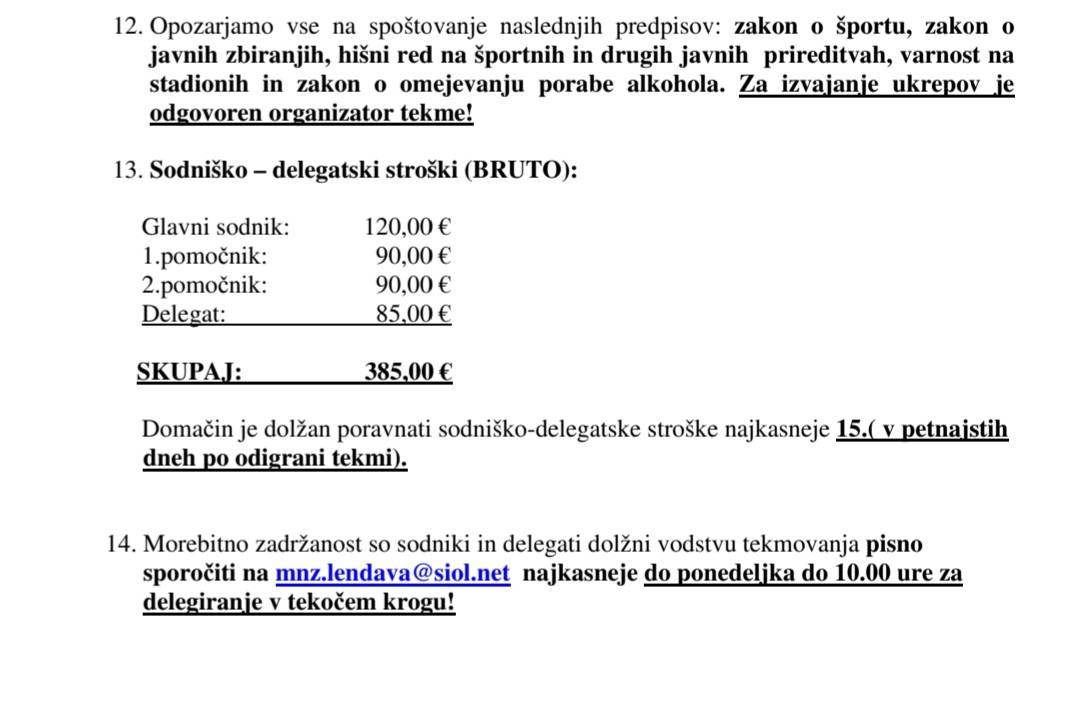 Prav tako sporočajo, da so letos morali kar dvakrat plačati uporabo igrišča za tekmo. Znesek naj bi bil visok 240 evrov.