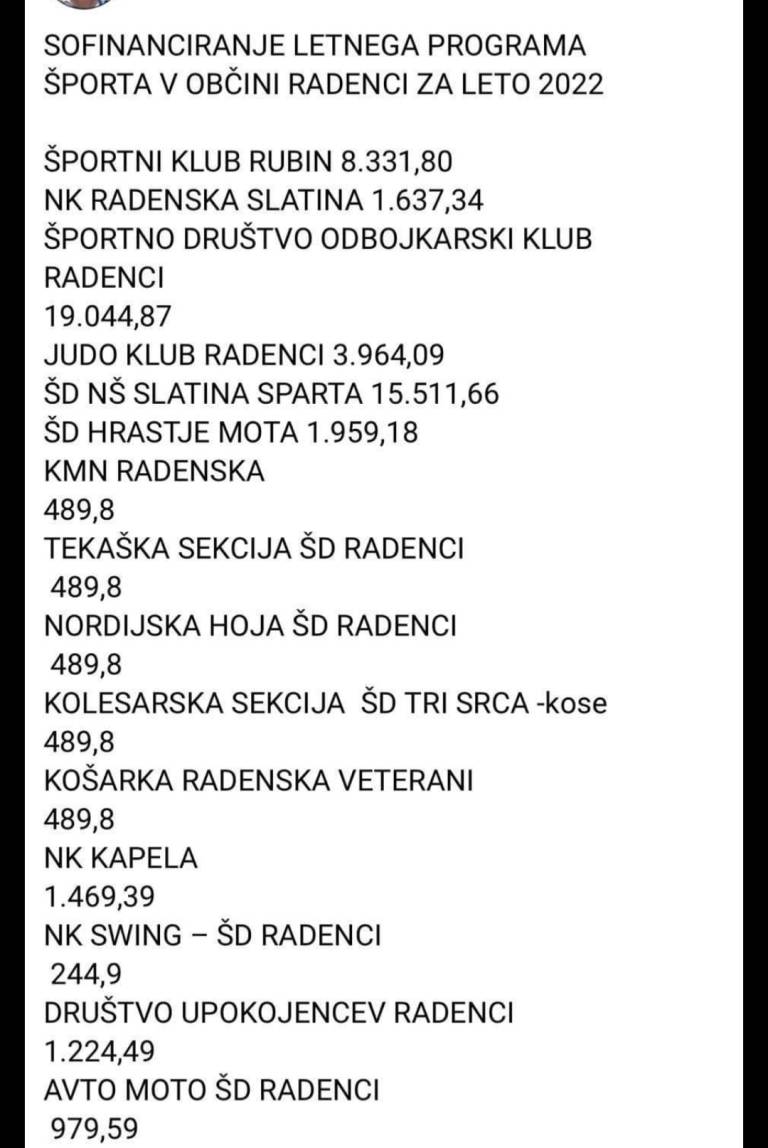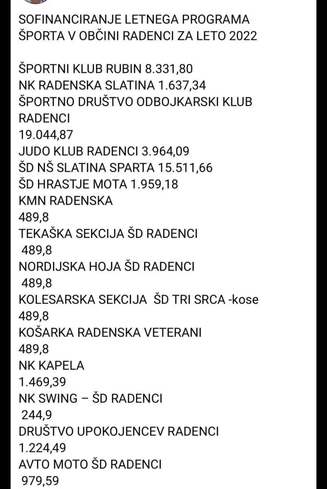 Nogometni klub Radenci je ostro obsodil govorice in jih označil kot lažne in neresnične. Pri tem so dodali priloge, iz katerih je razvidno, da so občinska sredstva, ki naj bi jih prejeli, znašala zgolj 1637 evrov.