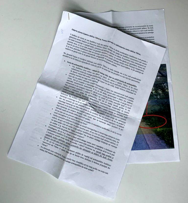 »V kolikor ne veste, je vas Sodišinci tudi del občine Tišina in davki prebivalcev tudi gredo v glavarino, preko katere se financira občina Tišina. Vendar vas Sodišinci sorazmernega dela, vezanega na neke investicije, v zadnjih letih oziroma od obstoja občine ni videla,« je zapisala skupina krajanov.