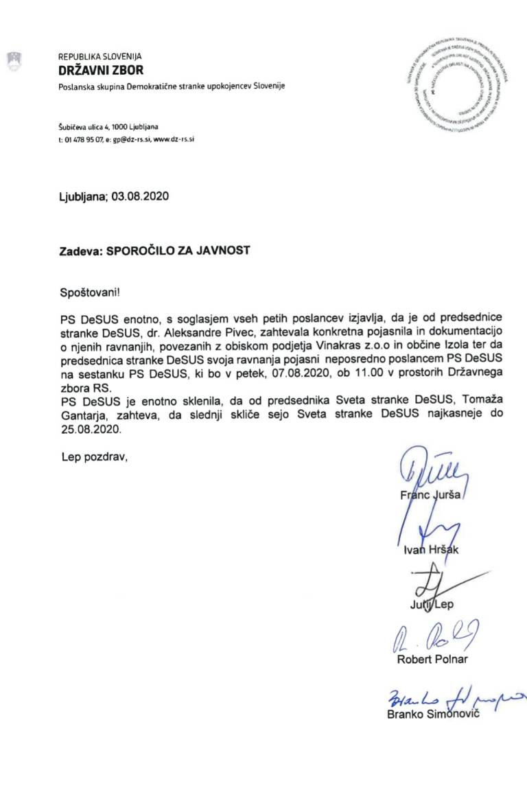 Spomnimo: Pivčeva je bila konec junija na zasebno-službenem obisku podjetja Vinakras in postala tarča namigovanj o korpucijskem tveganju. S sabo je namreč pripeljala svoja sinova, za nastanitev in hrano pa naj bi jim plačalo zasebno podjetje. Tako Pivčeva kot podjetje Vinakras sta očitke zavrnila.