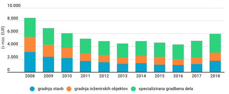 Gradbeništvo je sicer ena od dejavnosti, ki jo je gospodarska kriza pred desetimi leti najbolj prizadela, in še zmeraj precej zaostaja v rasti v primerjavi z drugimi dejavnostmi. So se pa v letih 2017 in 2018 stvari začele obračati na boljše, in slovensko gradbeništvo spet doživlja rast na vseh področjih, vendar še ni doseglo rasti iz predkriznih časov.