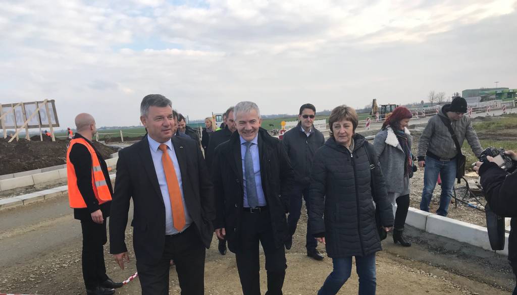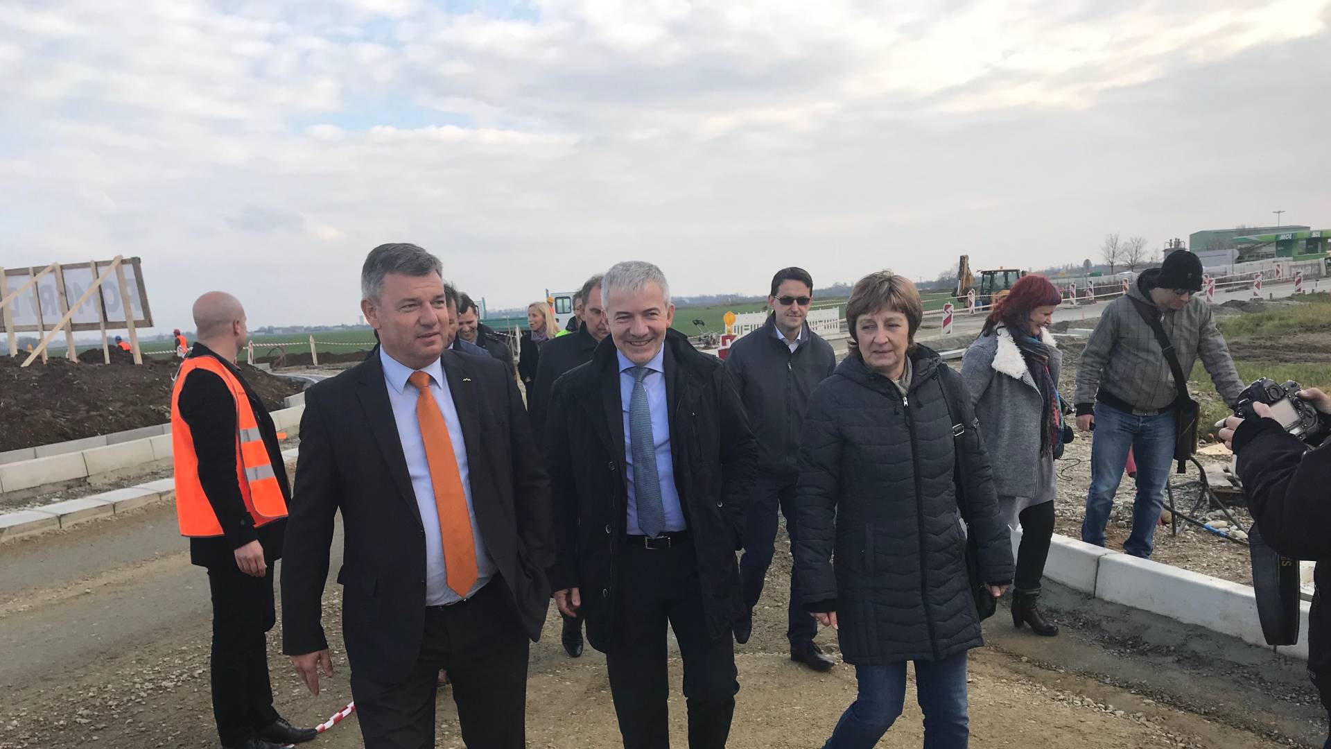 Minister za infrastrukturo Peter Gašperšič si je v včeraj na delovnem obisku v Pomurju ogledal, kako potekajo zaključna dela na prvi etapi izgradnje južne obvoznice v Murski Soboti.