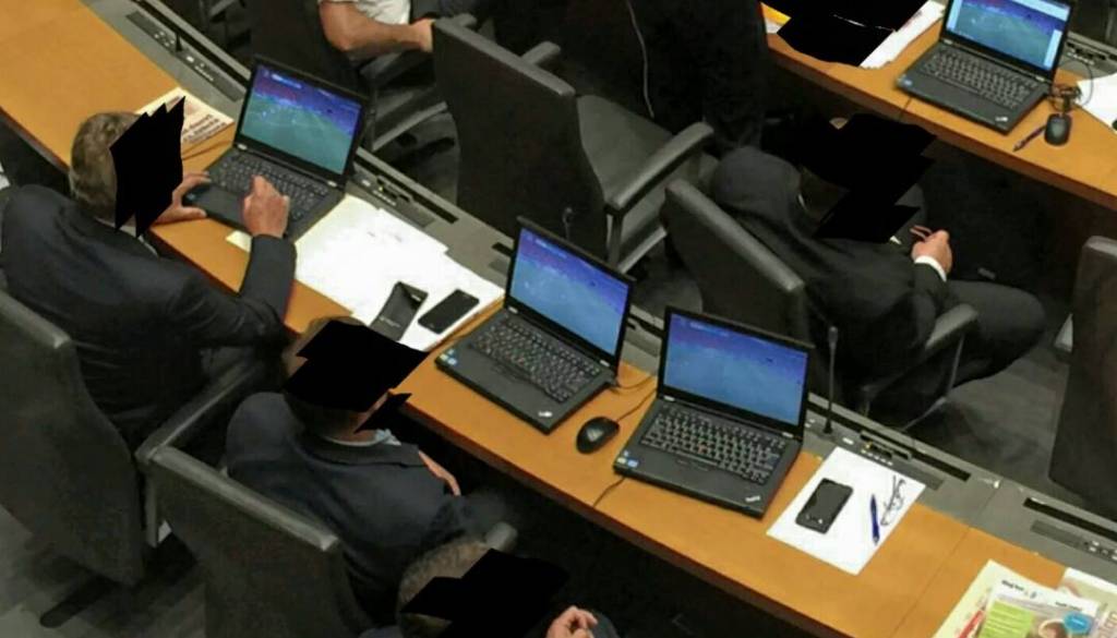 Danes, 15. 6. 2016, so najmanj štirje poslanci v Državnem zboru med uradno sejo gledali nogomet na svojih računalnikih. Ker so zaščiteni kot kočevski medvedje, sem vsem štirim prekril obraze, saj bi drugače lahko tožili fotografa. To so "tapravi predstavniki ljudstva". Vidite, kako se "borijo" za vas državljane!