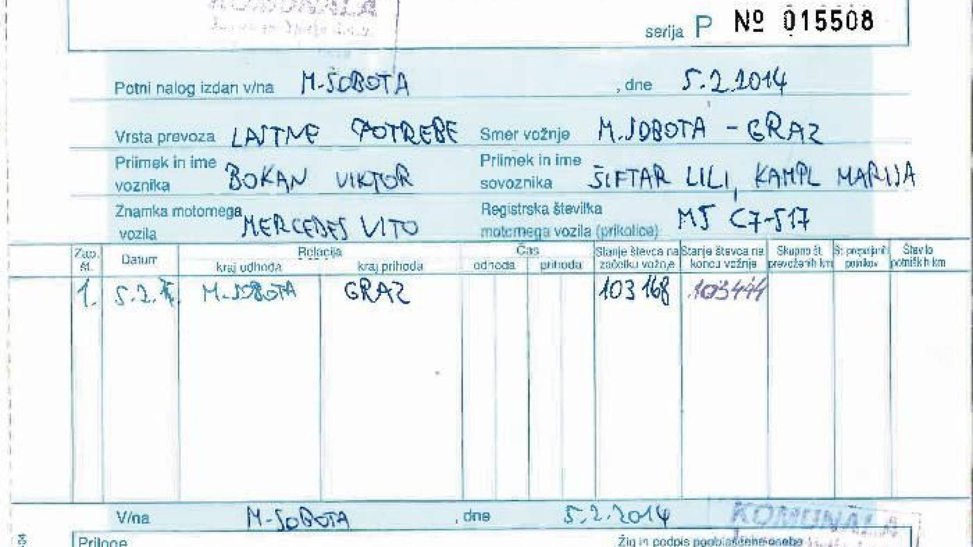 Da je bila pot v Ikeo službena, murskosoboška Komunala izkazuje tudi s potnim nalogom, ki so ga posredovali Večeru. Iz njega izhaja, da je bila pot opravljena 5. februarja, v oči pa bode predvsem število opravljenih kilometrov. Tako so Bokan Viktor ter sopotnici Šiftar Lili in Kampl Marija v obe smeri prevozili kar 276 kilometrov, kar je po našem izračunu vsaj 60 kilometrov več, kolikor je daljša pot do Graza oz. tamkajšnje Ikeine trgovine. Če bi šli po krajši poti, pa bi za to porabili 176 kilometrov, kar je skoraj 100 kilometrov manj od izkazanih. Kar je zanimivo, saj je Drago Šiftar ženino prisotnost na službeni poti upravičil z besedami, da žena govori nemško ter da pozna pot do Ikee.