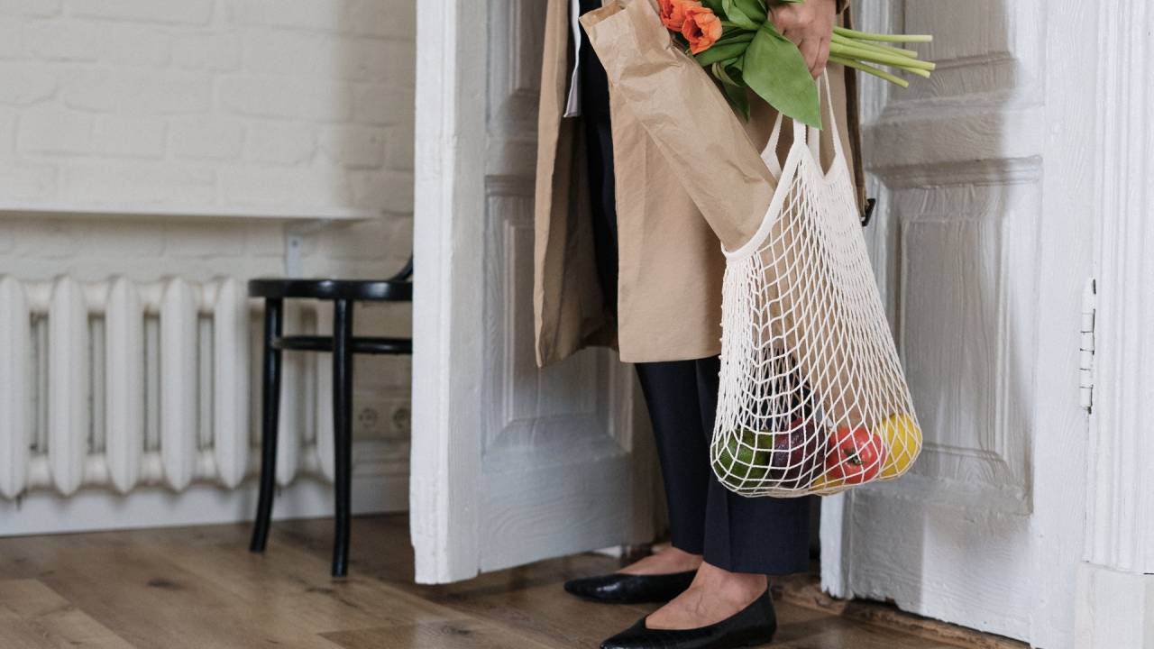 - ko vstopimo skozi vhodna vrata stanovanja, vrečko, ki jo prinesemo iz trgovine, odložimo v predsobi,