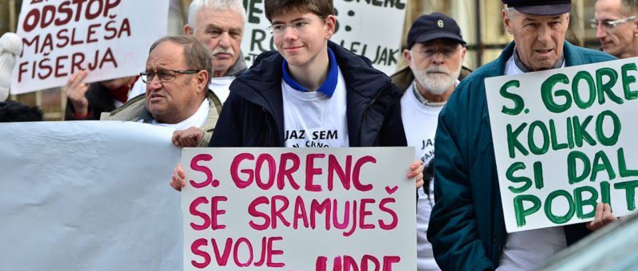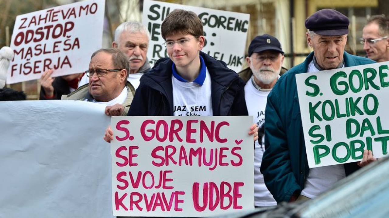 Pred današnjim sojenjem, se je pred sodiščem v Murski Soboti, zbrala večja skupina protestnikov. Podporniki Leljaka in Janeza Janše so v en glas kričali: "Udba mafija, Gorenca v zapor, Kučana v zapor".