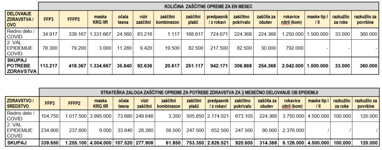 Kot so zapisali, je bil namen priprave seznama trimesečnih strateških zalog medicinsko-tehničnih sredstev tudi v vhodnem podatku Zavodu RS za blagovne rezerve, da prične s postopki priprave in objave razpisne dokumentacije za dopolnjevanje zalog navedenih zaščitnih sredstev.