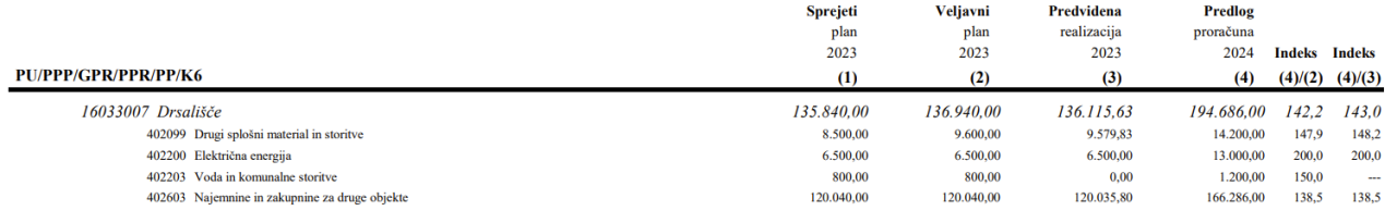 V predlogu proračuna je za drsališče v letu 2024 planirano 194.686 evrov, medtem ko je bilo v veljavnem planu za leto 2023 načrtovanih 136.940 evrov.