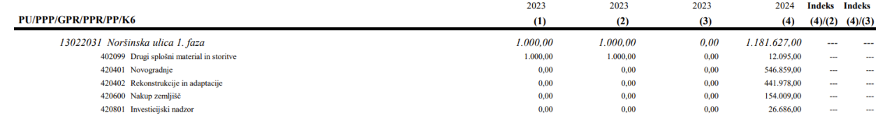 Kot je razvidno iz gradiva, je za leto 2024 v prvi obravnavi predloga planiranih 23.203.799 evrov prihodkov in 24.677.204 evrov odhodkov.