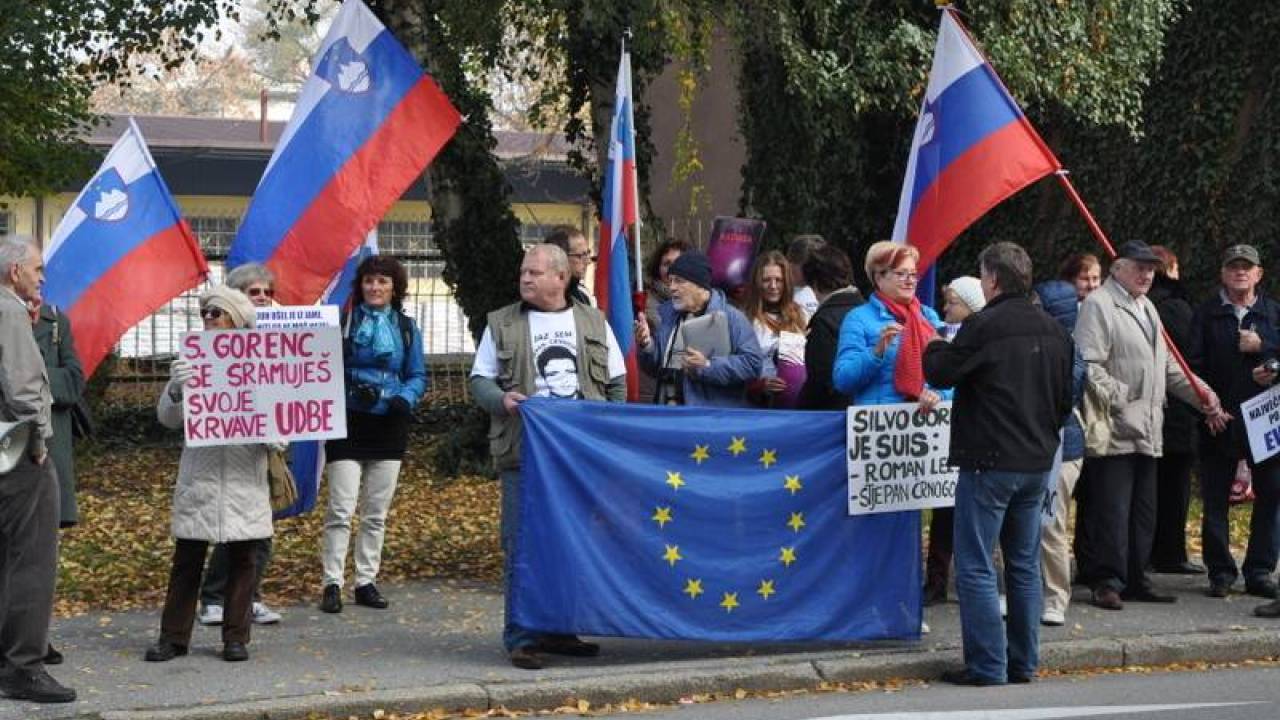 Skupina ljudi v podporu Leljaku