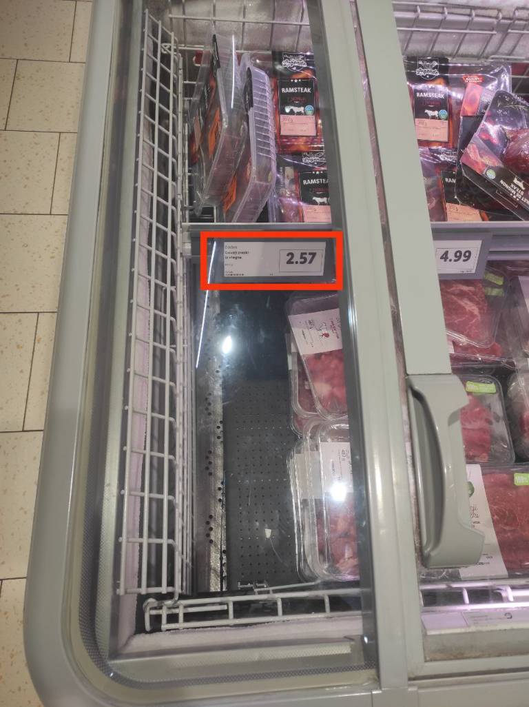 Nedavno je na družbenih omrežjih zaokrožil primer kilograma svinjskih zrezkov za 0,79 evra ali pa 0,99 evra za kilogram govejih zrezkov. Na trgovskih policah pa teh izdelkov ni bilo najti.