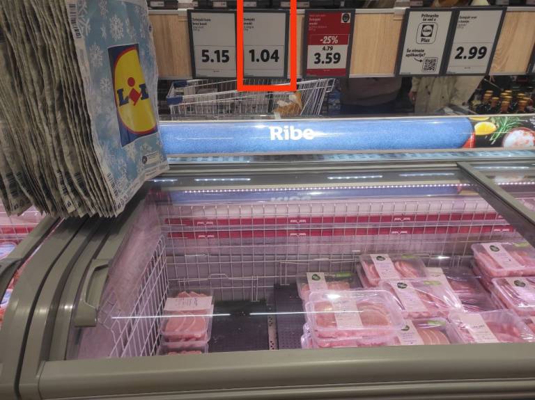 Blazno nizke cene smo zasledili tudi sami, vendar izdelka v trgovini Lidl na primer v hladilniku ni bilo. Kilogram govejih zrezkov blagovne znamke »Naše nam paše« naj bi bil na voljo za le 2,57 evrov na kilogram, kilogram svinjskih zrezkov pa za 1,04 evra na kilogram. A mesa po tej ceni v hladilniku ni bilo.