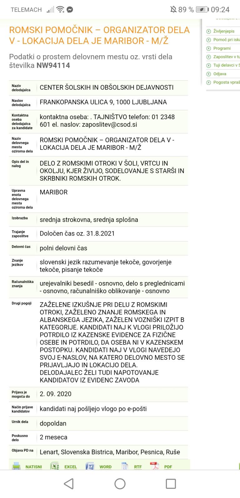 Center šolskih in obšolskih dejavnosti išče romskega pomočnika, ki bi delal z romskimi otroci v šoli, vrtcu in okolju, kjer živijo. Zaposleni bi moral sodelovati tudi s starši in skrbniki romskih otrok. Pri tem delu je dovolj srednja splošna ali srednja strokovna izobrazba. Če poznate romski ali albanski jezik imate prednost pred drugimi kandidati.