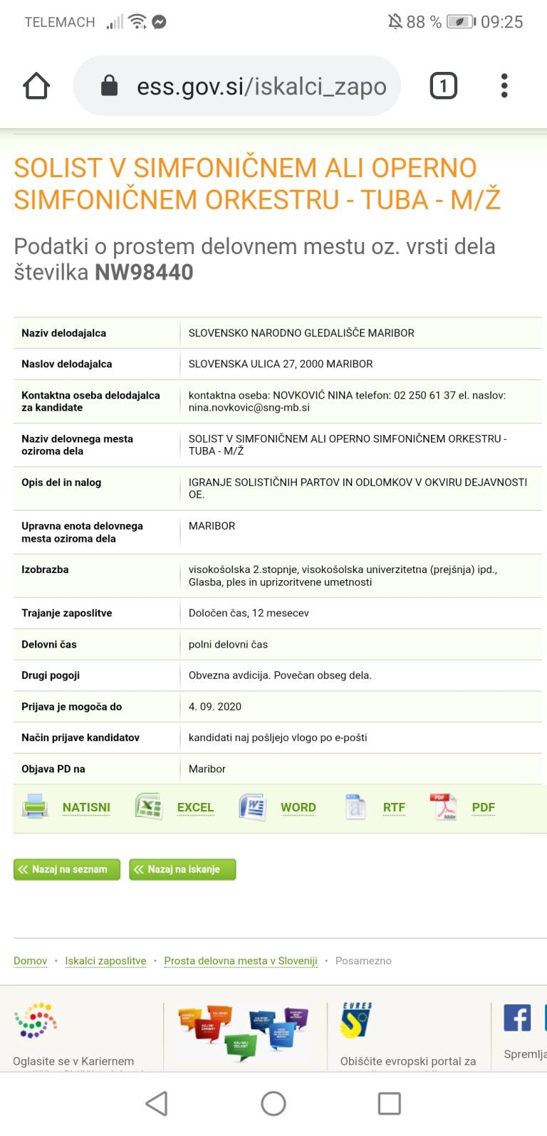 Slovensko narodno gledališče Maribor pa bo organiziralo avdicije za vse, ki jih zanima delo solista na tubi v simfoničnem ali operno simfoničnem orkestru.