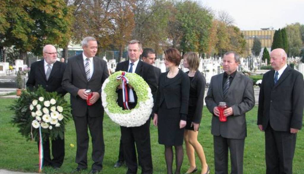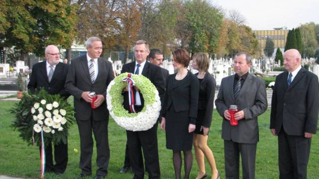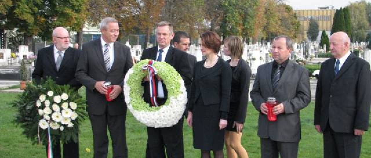 Na pokopališču in ob zidu nekdanjega koncentracijskega taborišča v Šarvarju na Madžarskem položili vence in prižgali sveče.