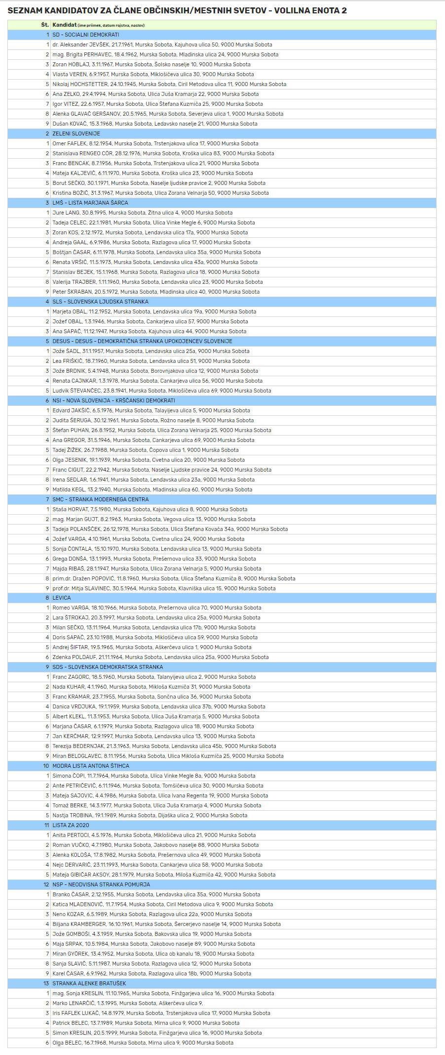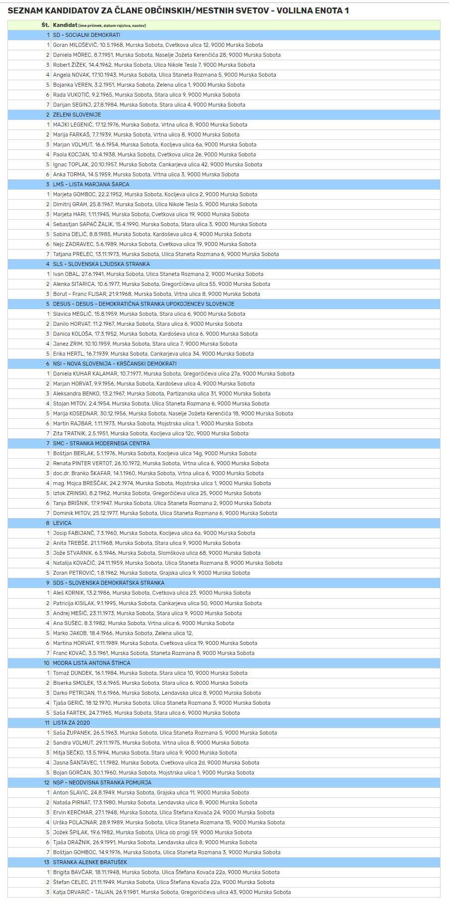 Prve uradne podatke o vloženih kandidaturah za mestne svetnike v MOMS si lahko ogledate v spodnjem seznamu, ki ga bomo sproti osveževali z novimi informacijami. Doslej so namreč na spletni stani lokalnih volitev Ministrstva za javno upravo bili zbrani le podatki, obdelani včeraj do 14. ure.