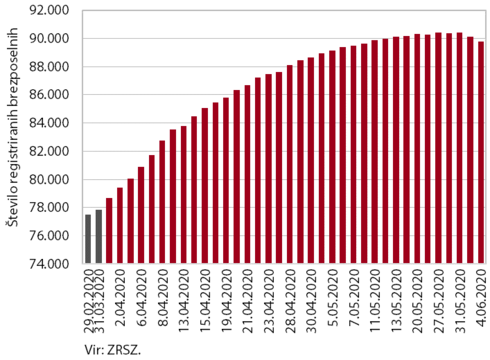 Koronakriza ima številne negativne učinke na trg dela, saj so podjetja primorana v racionalizacijo zaradi slabših poslovnih rezultatov, zaposlovanje pa posledično stagnira. Vse od epidemije so tako na Zavodu RS za zaposlovanje beležili izrazito povečevanje registriranih brezposelnih, toda trend v začetku junija kaže, da je vrhunec že dosežen in se bo brezposelnost začela zniževati. Slika bo jasnejša v mesecu juliju, saj se bo konec junija iztekel ukrep čakanja na delo.