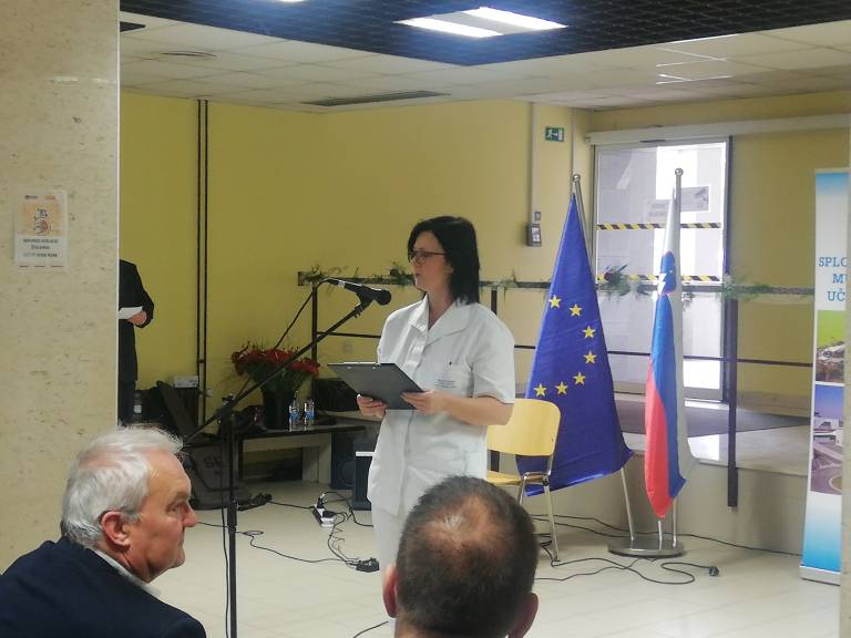 Pred prisotne je stopila tudi vodja odseka nefrologije Martina Lukač, ki je orisala razvoj odseka in pri tem dejala, da so tekom let pričeli sprejemati vse več kroničnih in akutnih dializnih bolnikov, kapacitete pa so bile premajhne.