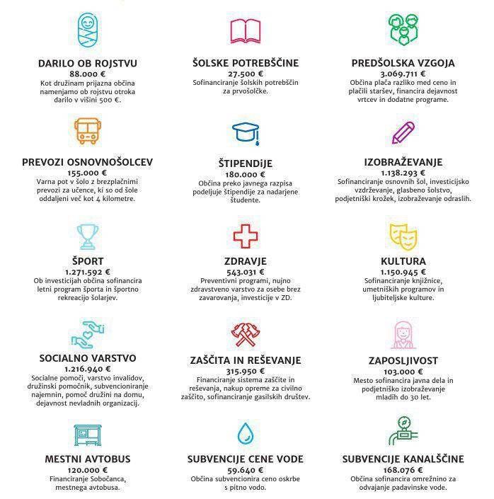 Glede na to, da je največji delež v proračunu namenjen investicijam, pa na občini poudarjajo, da na prvem mestu ostajajo ljudje in skrb zanje. Tudi zato je 9.600.000 evrov namenjenih različnim socialnim transferjem.