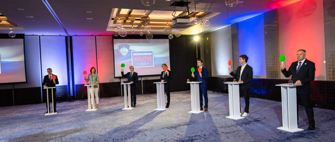 Mnenja so soočili Marjan Šarec, LMŠ - Lista Marjana Šarca, Tanja Fajon, SD - Socialni demokrati, Aleš Hojs, SDS - Slovenska demokratska stranka, Robert Golob, Gibanje Svoboda, Matej Tonin, NSi - Nova Slovenija, Luka Mesec, Levica in Zdravko Počivalšek, Povežimo Slovenijo.