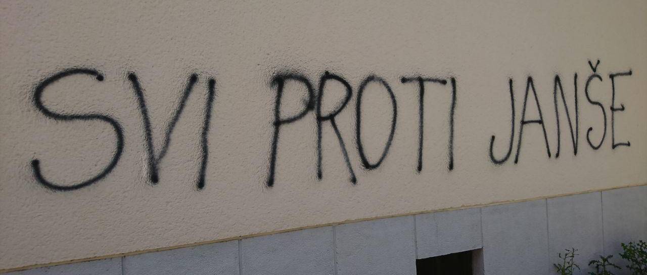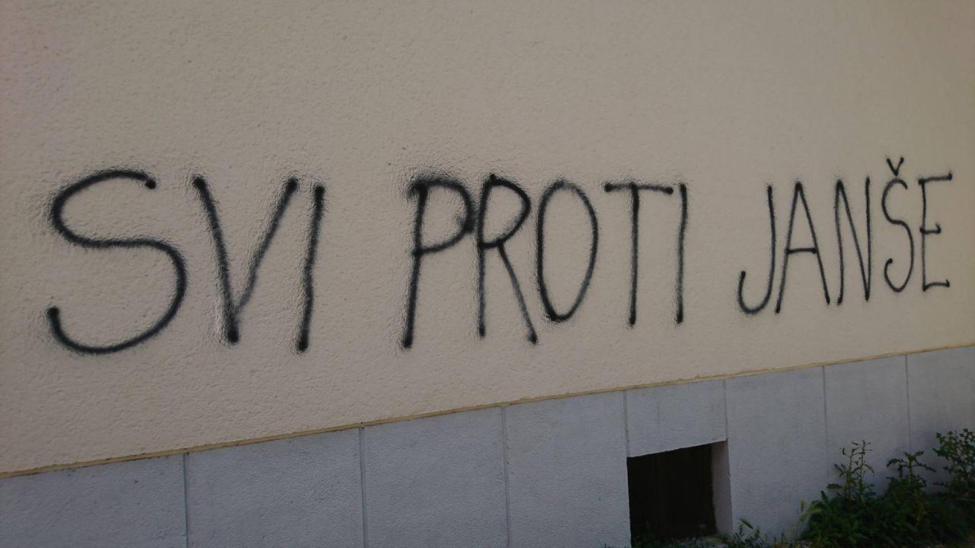 Stavbe in zidove v Murski Soboti že lep čas 'krasijo' dela vandalov s pozivom: »Svi proti Janše.« Ta so se znašla tako na javnih kot na zasebnih objektih in čeprav naj bi pri njihovi odstranitvi šlo za razmeroma preprost postopek, ta zdaj traja že nerazumno dolgo.