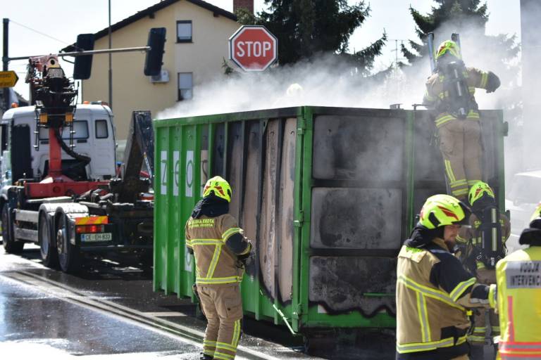 V ulici Mikloša Kuzmiča je zagorel kontejner z odpadno električno in elektronsko opremo.
