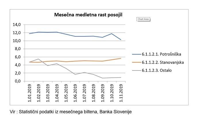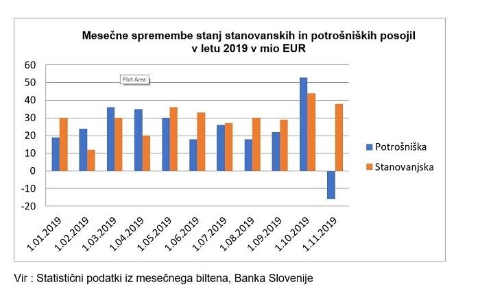 Že v novembru pa so se stanja močno znižala, posebej pri potrošniških posojilih, kjer je razvidno že celo neto odplačilo.