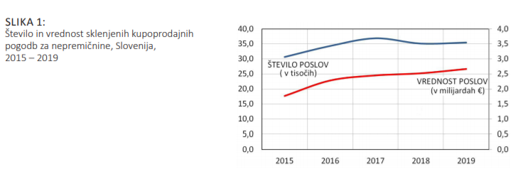 Geodetska uprava Republike Slovenije je pred kratkim objavila Poročilo o slovenskem trgu nepremičnin za leto 2019, ki obravnava stanje na nepremičninskem trgu v Sloveniji glede na obseg trgovanja z nepremičninami in predstavlja tudi analitiko cen nepremičnin. Kot izhaja iz poročila, je lani dejavnost trga, predvsem stanovanjskega, ostala na visoki ravni, ki jo je dosegla s hitro rastjo v letih od 2013 do 2017.