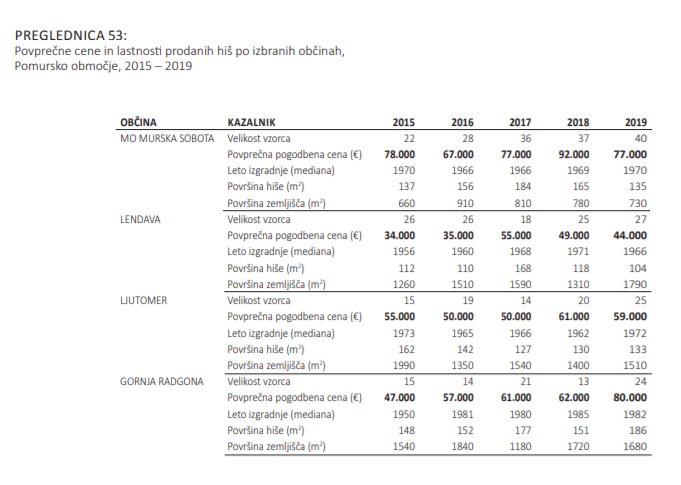 Značilno je tudi, da imajo prodane hiše na Pomurskem območju največja pripadajoča zemljišča, pišejo v poročilu. Pomurski trg stanovanjskih hiš je bil v letih od 2015 do 2019 takoj za štajerskim najbolj dejaven v državi.