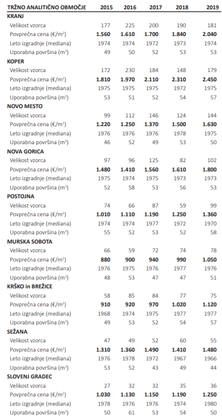 V poročilu so analizirali nekaj območij s podobnimi tržnimi značilnostmi, ki predstavljajo naselja. Gre za 14 večjih območij, med njimi tudi Murska Sobota. Najnižje cene stanovanj med obravnavami območja ima ravno Murska Sobota, kjer so več kot 40 odstotkov nižje od povprečja in več kot 60 odstotkov nižje od ljubljanskih.