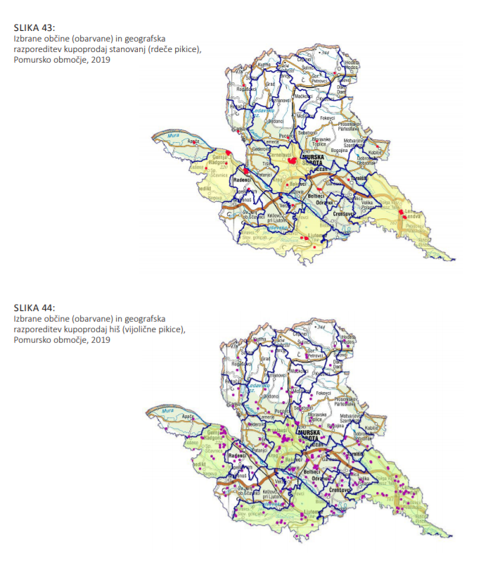 Za analize trga in prikaz podatkov za Pomursko območje so poleg občine Murska Sobota, kjer je stanovanjski fond največji, izbrali še tri občine, v katerih je bilo v preteklih petih letih realizirano največje število kupoprodaj stanovanj in hiš. Gre za Gornjo Radgono, Lendavo in Ljutomer.