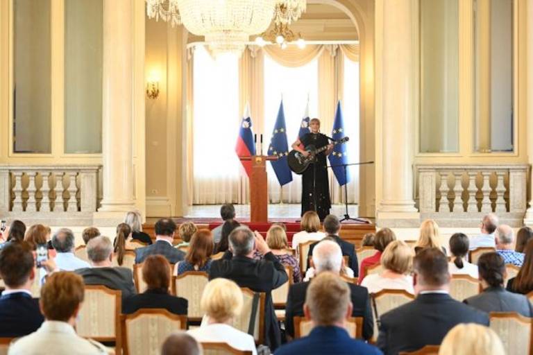 Predsednik Republike Slovenije Borut Pahor je danes, v počastitev državnega praznika združitve prekmurskih Slovencev z matičnim narodom, v Veliki dvorani Predsedniške palače sprejel in nagovoril obiskovalce dneva odprtih vrat.