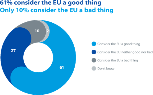 Razprava o brexitu je prav tako pokazala, kako zelo so države članice EU v zadnjih desetletjih postale medsebojno povezane in prepletene. Hkrati so postale jasno vidne konkretne koristi, ki izhajajo iz članstva države v Uniji. Slednjih se pogosto zavemo šele, ko smo soočeni z možnostjo, da bi jih izgubili. Zadnja javnomnenjska raziskava Eurobarometer (iz februarja 2019) kaže, da sta več kot dve tretjini (68 odstotkov) vprašanih Evropejcev prepričani, da je članstvo v EU njihovi državi prineslo koristi, 61 odstotkov pa jih meni, da je EU dobra stvar.
