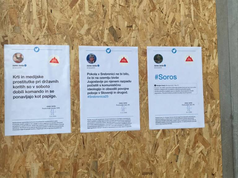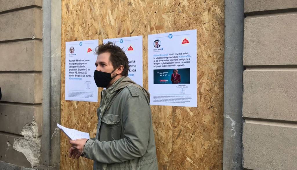 Izobesili so kopije 14 Janševih tvitov in omenili, da jih je preko 200 objavil samo v mesecu oktobru.