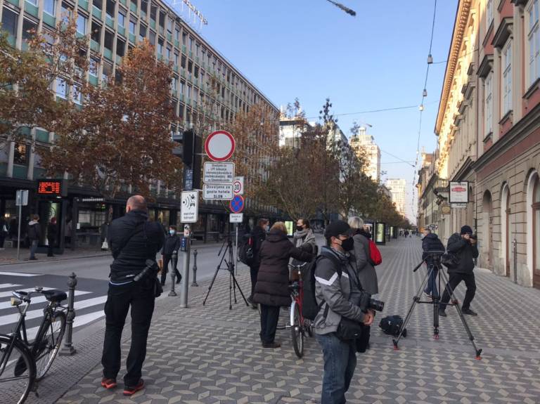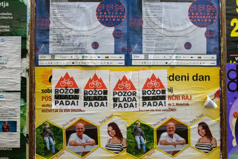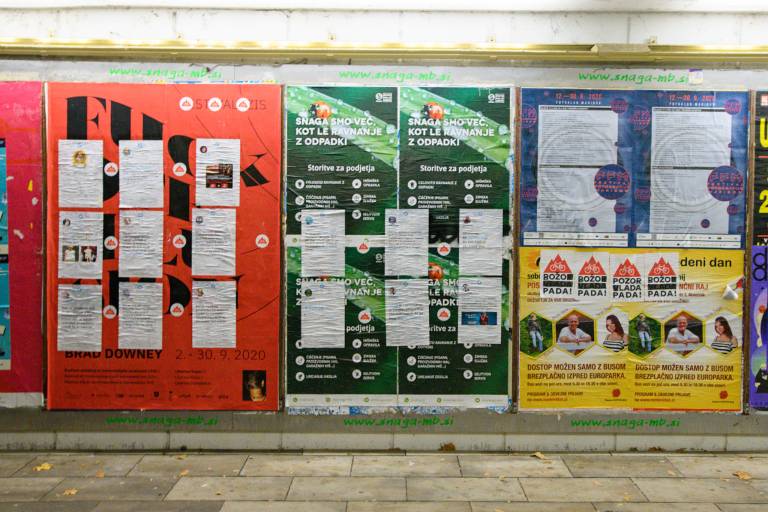 V Mariboru so s tviti predsednika vlade polepili podhod pri avtobusni postaji Slavija, vendar se v štajerski prestolnici ob otvoritvi razstave protestniki niso zbrali.