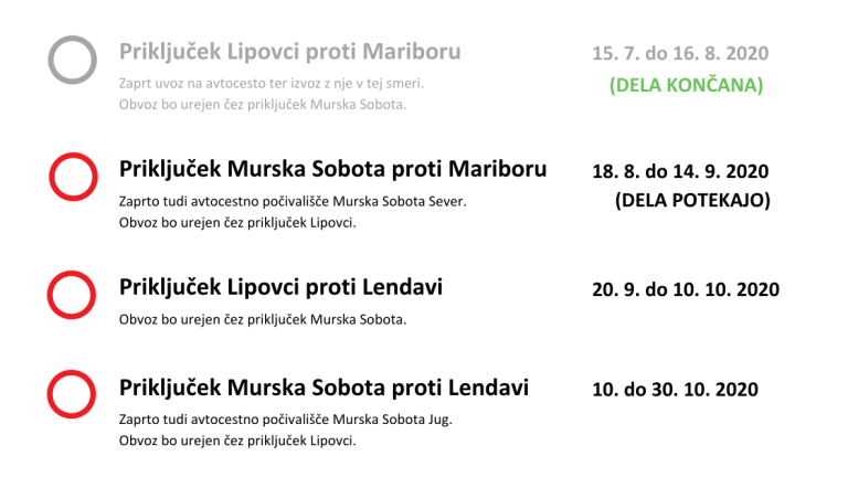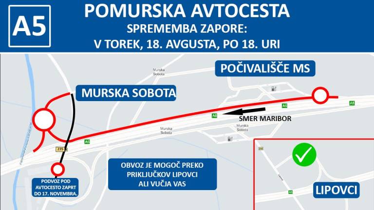 Priključek Lipovci se odpira, zapirata pa se priključek in počivališče Murska Sobota proti Mariboru.