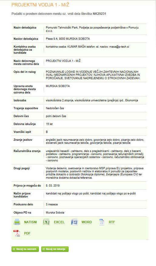 V Pomurskem tehnološkem parku, podjetju za pospeševanje podjetništva v Pomurju, z razpisom iščejo projektnega vodjo. Kandidatu z univerzitetno oziroma visokošolsko izobrazbo 2. stopnje s področja ekonomije ponujajo zaposlitev s polnim delovnim časom, za nedoločen čas.