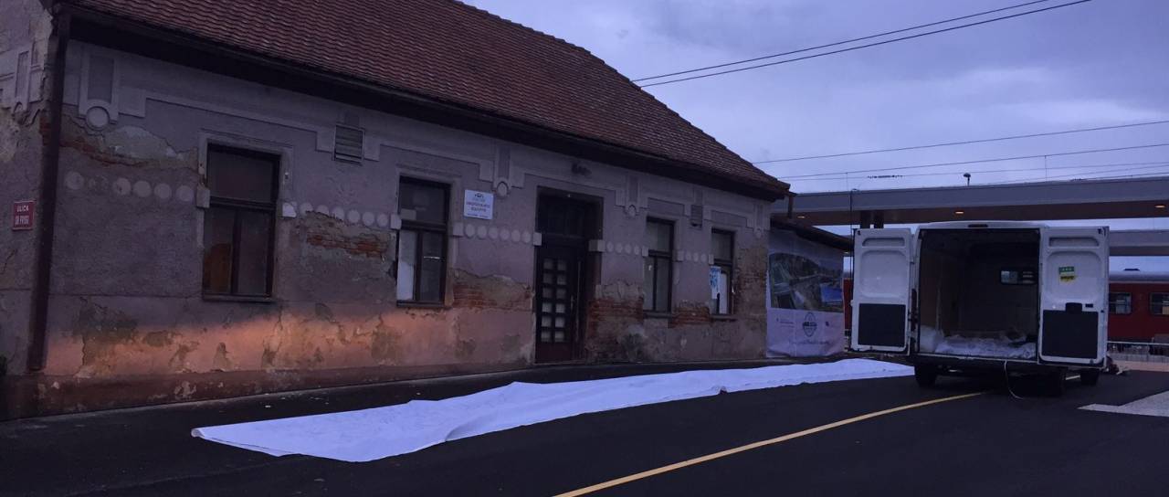 V petek so slavnostno odprli elektrificirano progo Pragersko - Hodoš, in kot smo že poročali, so za ta dogodek razpadajoči nekdanji gostilni, ki kazi okolico železniške postaje, nadeli nova oblačila. Lastnik bi jo porušil, a kot je v naši državi že praksa, se je zataknilo pri papirjih.