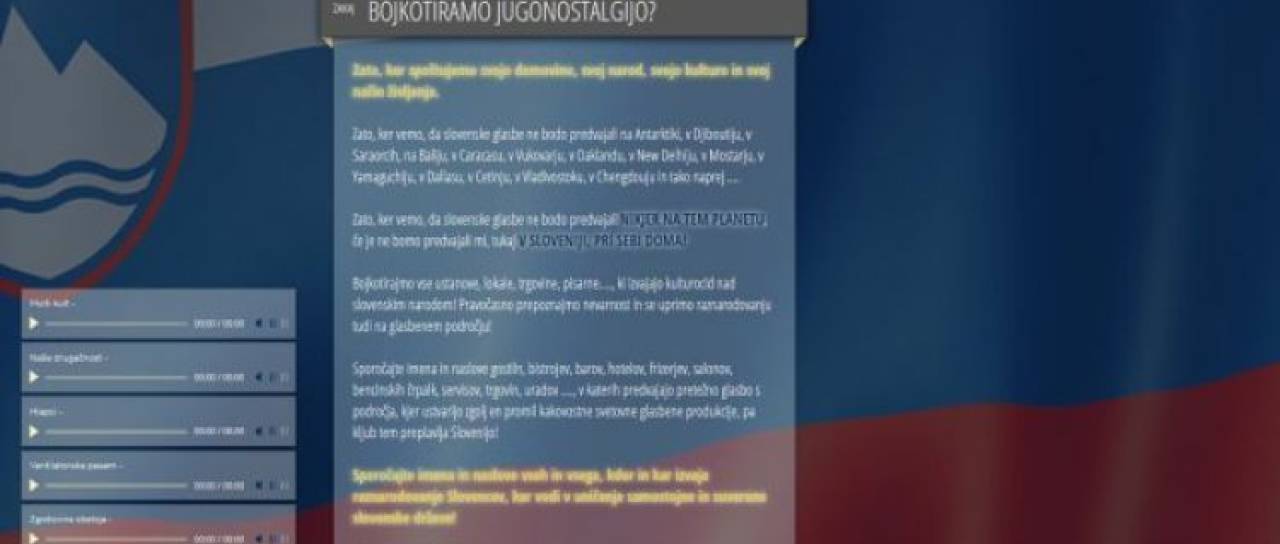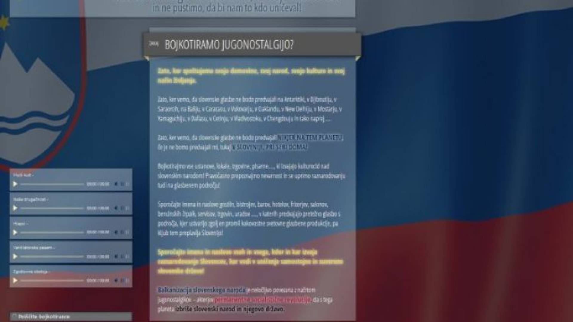 Nova spletna stran poziva k bojkotu radijskih postaj, gostiln in ponudnikov drugih storitev, kjer se vrti »jugonostalgična glasba«.