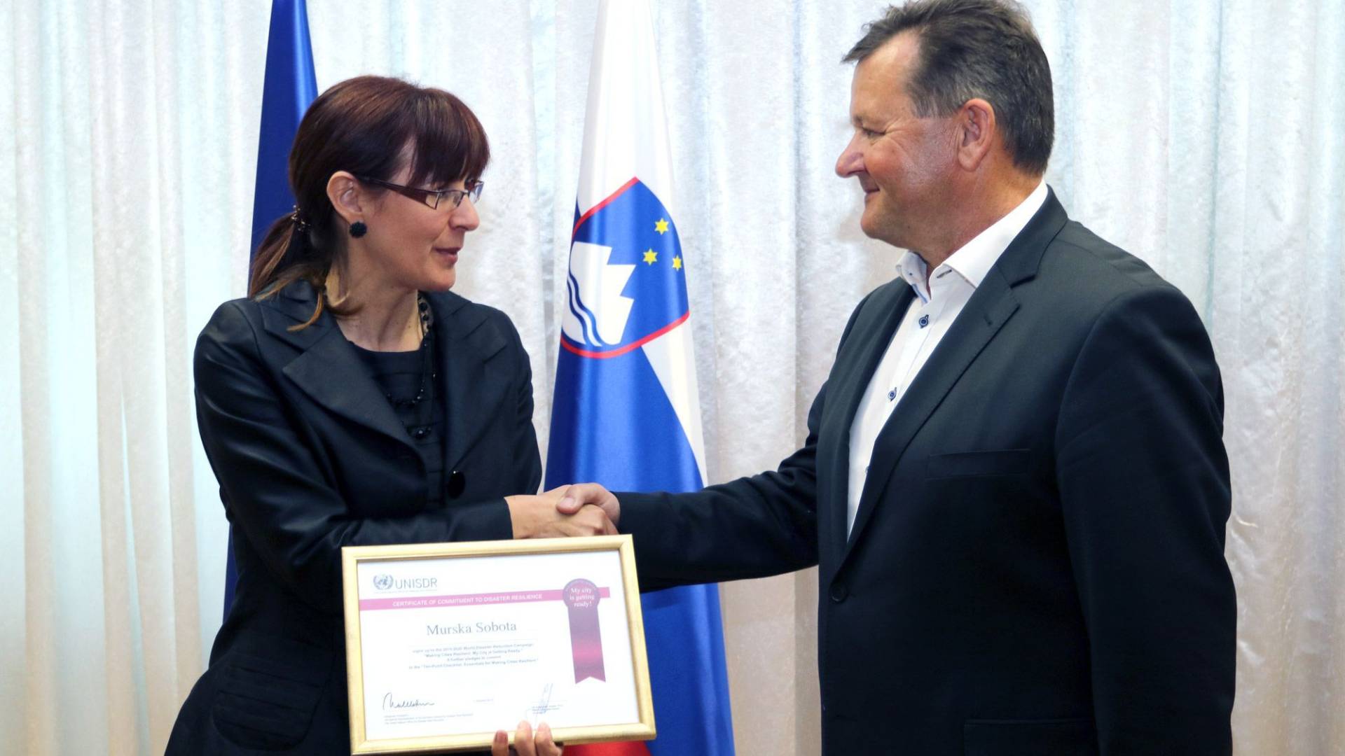Mestni občini Murska Sobota podelili certifikat Združenih narodov »Mesto in občina, odporna proti nesrečam«.