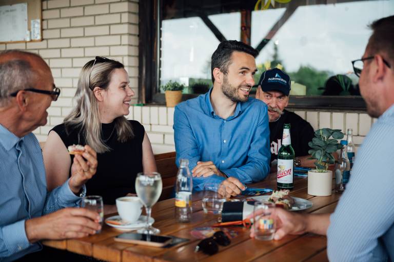 Ustavili so se v številnih pomurskih občinah, se srečali z župani in ljudmi na terenu. V Gornjih Petrovcih je ekipo evropske kavarne pozdravil župan Občine Kuzma Jožef Škalič, na Hodošu pa jo je sprejel najmlajši župan v Sloveniji Denis Tamaško, ki prav tako prihaja iz vrst NSi.