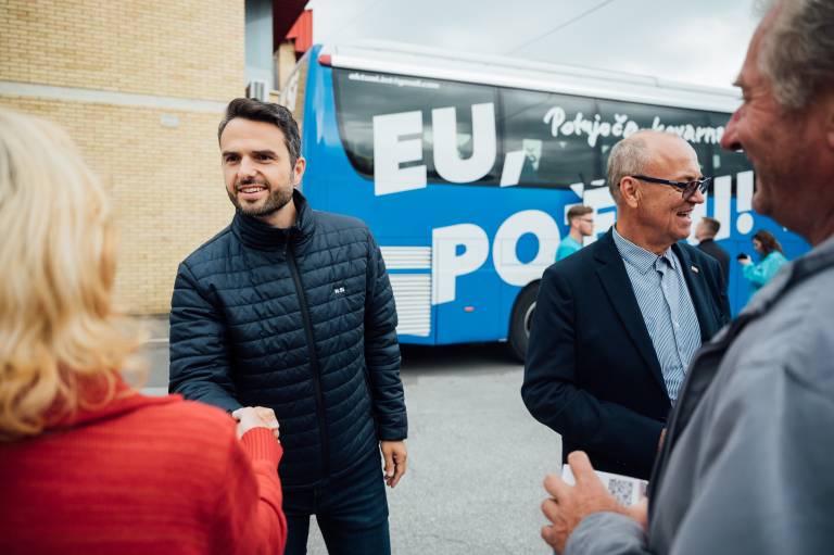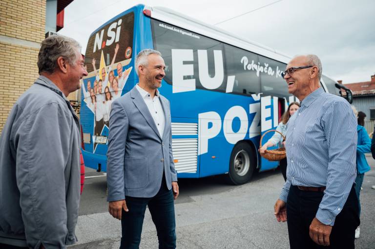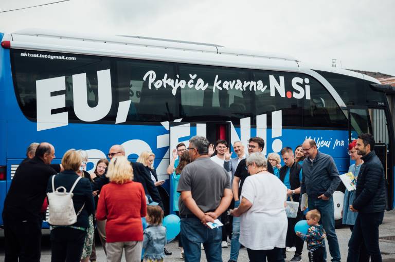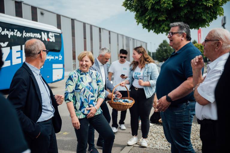 Ekipa Nove Slovenije je z avtobusom, ki so ga za potrebe evropske volilne kampanje spremenili v potujočo kavarno, obiskala Prekmurje.