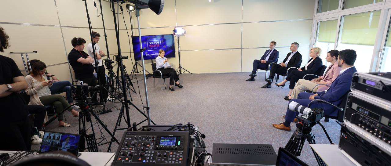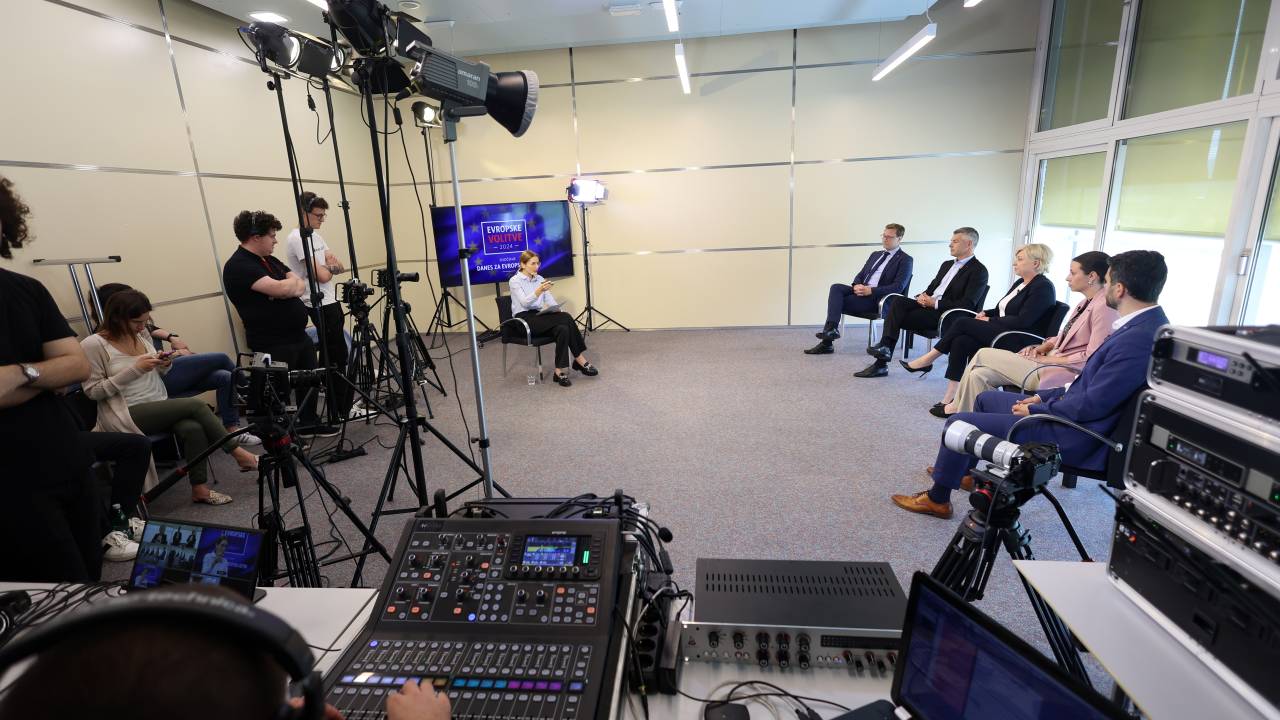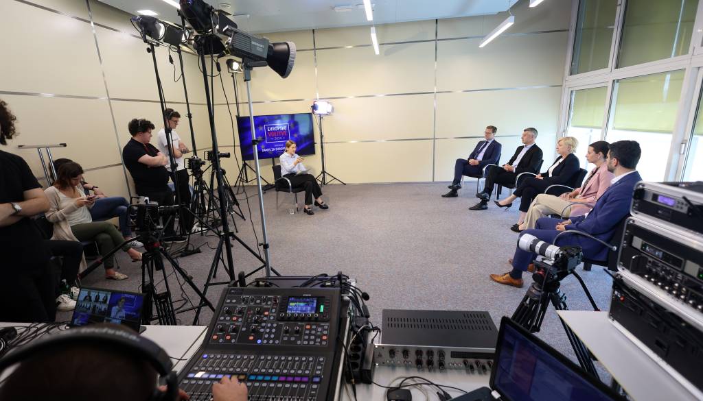 Soočenje uredništev Moji Mediji in televizije IDEA pred evropskimi volitvami. Mnenja smo soočili v prostorih Gospodarske zbornice Slovenije.