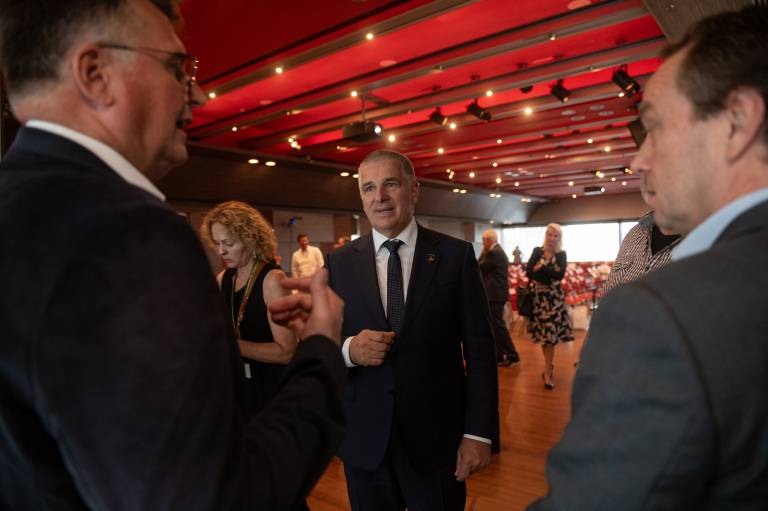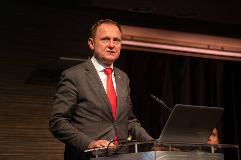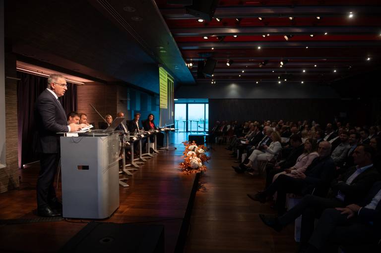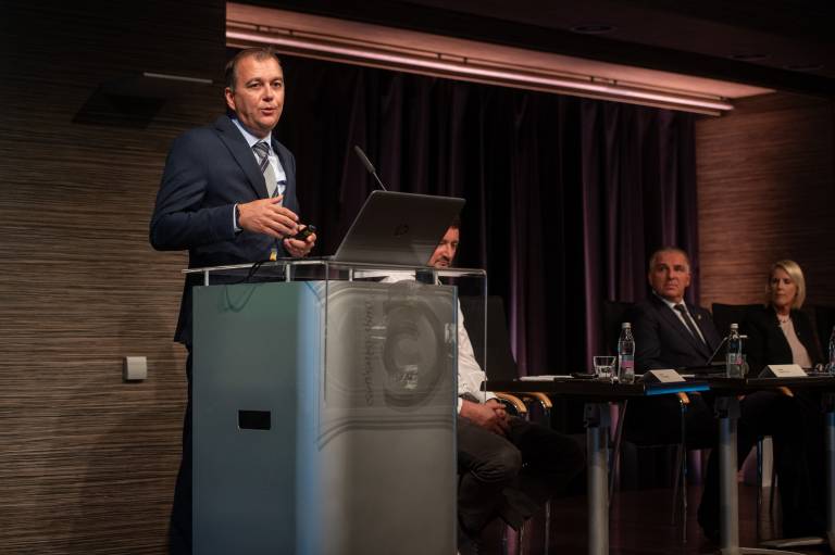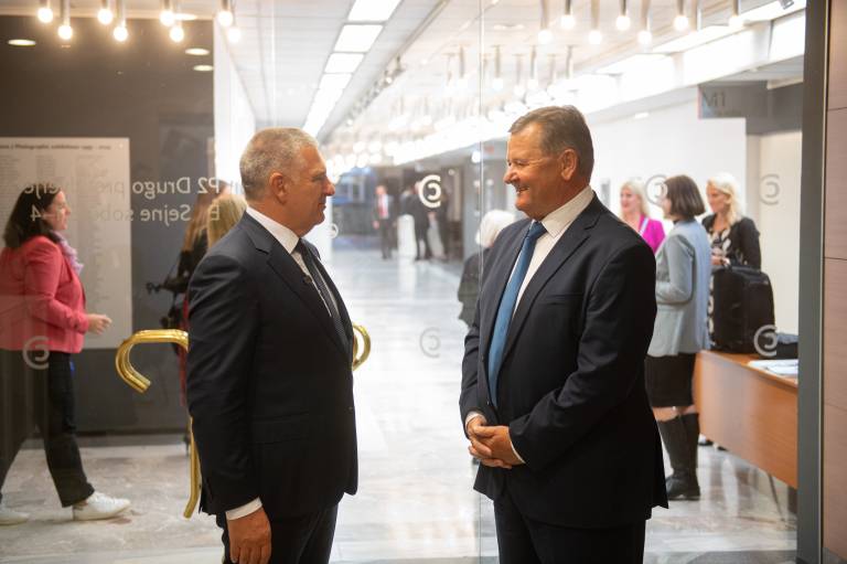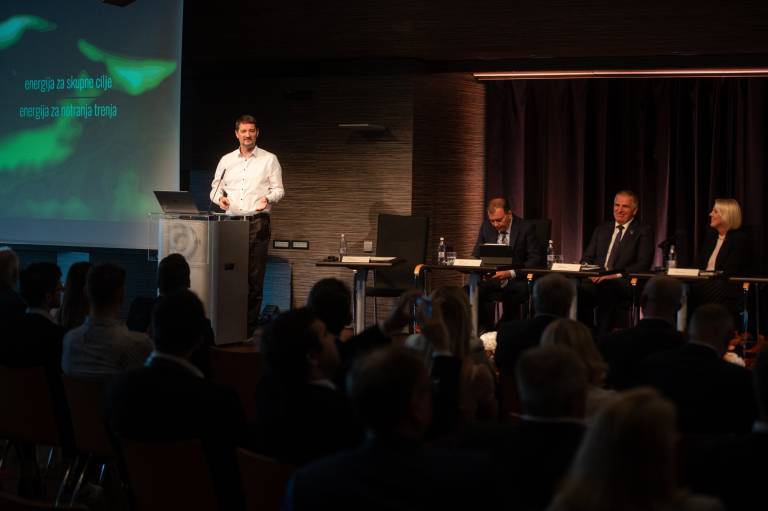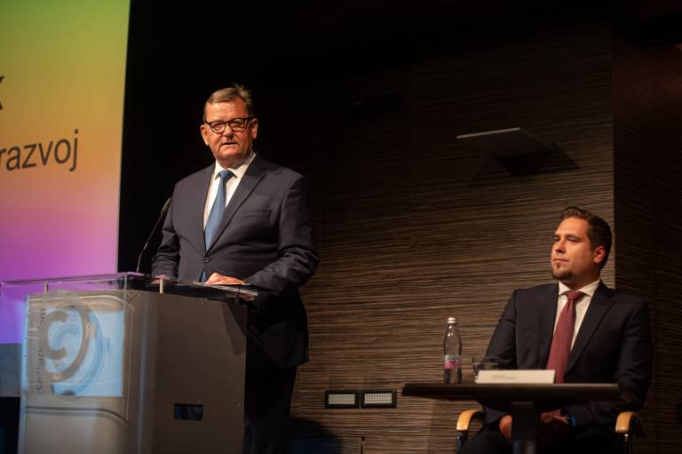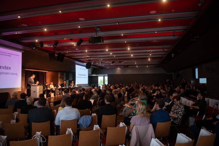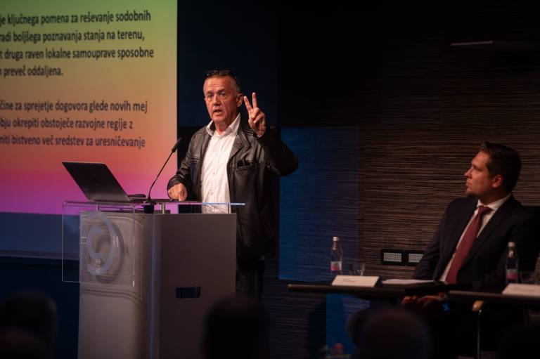 Za njim je pred mikrofon stopil minister za kohezijo in regionalni razvoj Aleksander Jevšek. Za dvig je potrebna močna država, ta pa je močna le toliko, kot so močne njene razvojne regije. Gre torej za resen izziv, ki pa bi ga lahko rešili v naslednjih desetih letih.