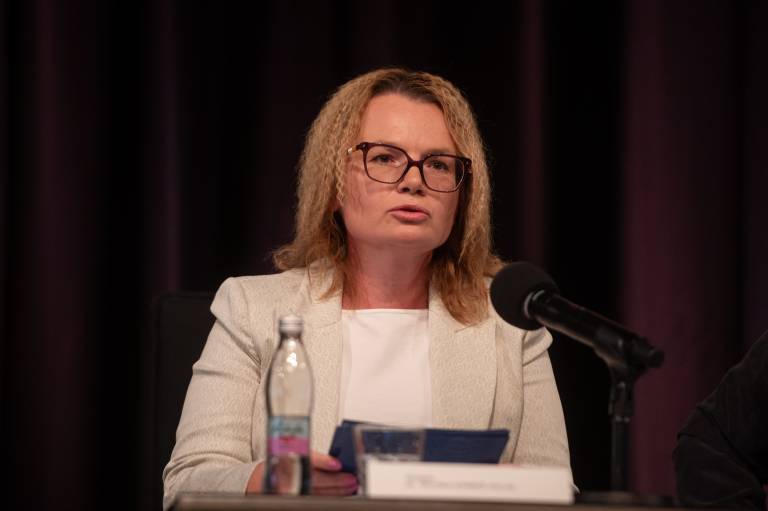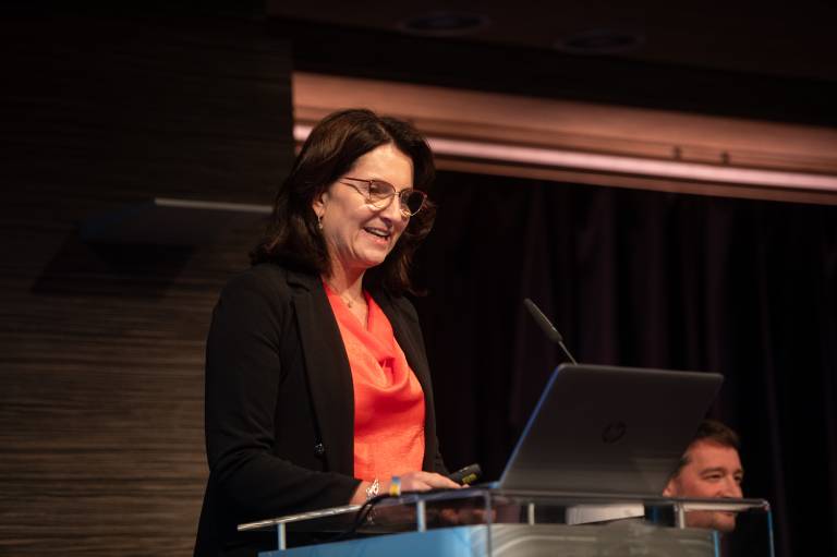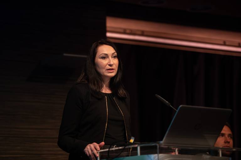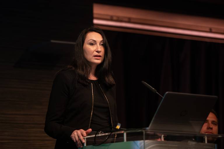 Kot zadnja je na govorniški oder stopila Polona Domadenik Muren z Ekonomske fakultete Univerze v Ljubljani. Trg dela spreminja umetna inteligenca; kot je dejala, bo do leta 2027 več kot 60 odstotkov delavcev potrebovalo prekvalifikacijo. Spremeniti pa bodo morali tudi svoj odnos: govornica je namreč poudarila, da jim bo treba privzgojiti pozitiven odnos do vseživljenjskega učenja v povezavi z novimi tehnologijami.