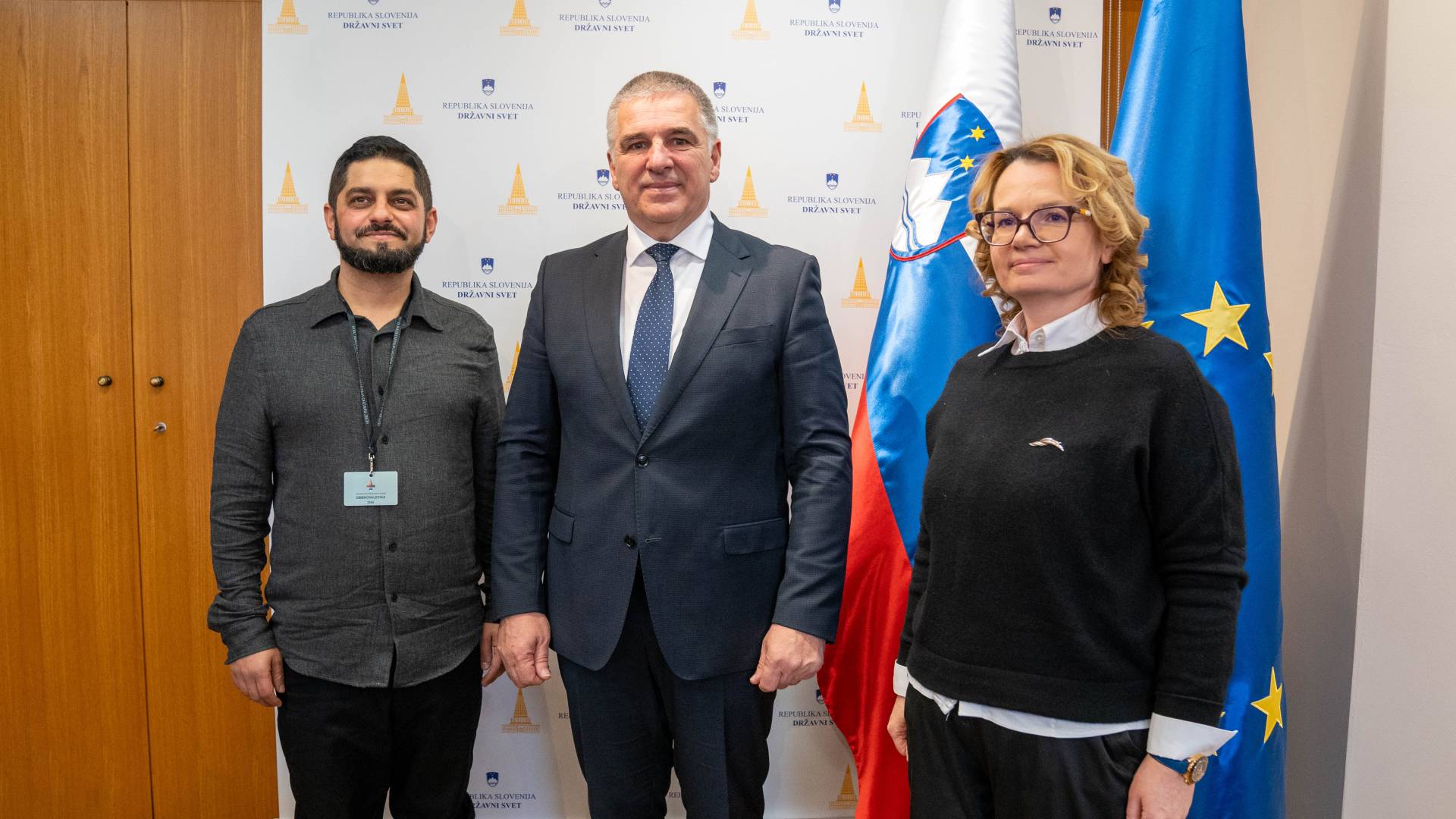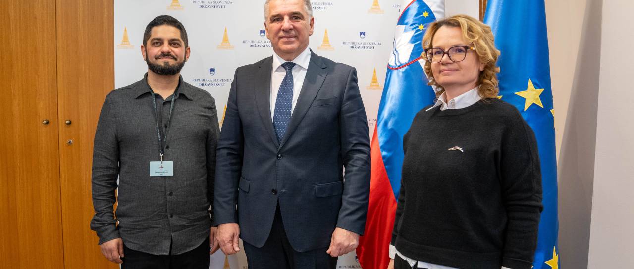 Predsednik Državnega sveta Republike Slovenije Marko Lotrič je v Ljubljani sprejel predstavnika romskega društva Sprememba takoj Murima Baftiara, ki vodi društvo, ustanovljeno decembra 2023 za pomoč romski mladini.