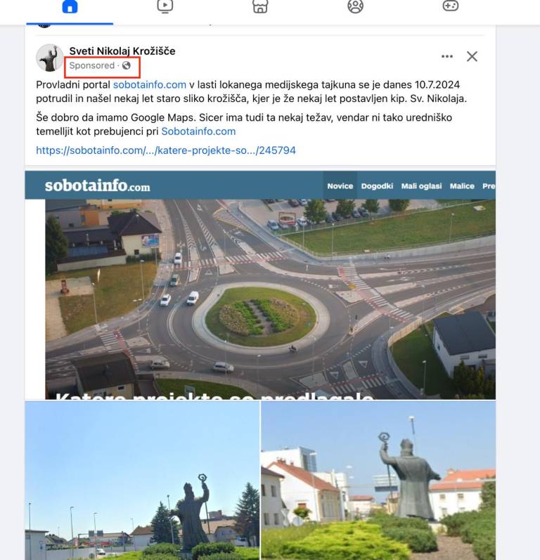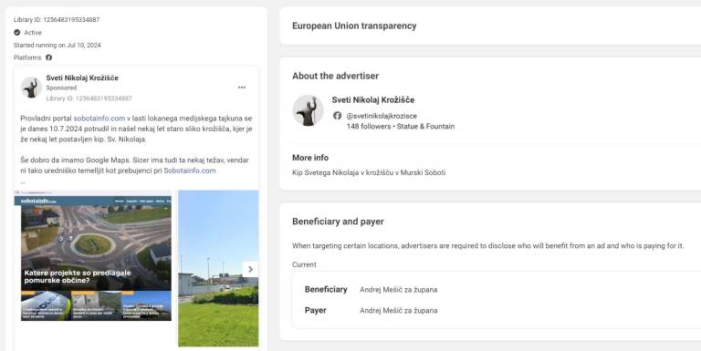 »Naročnik in plačnik oglasa na FB strani Sveti Nikolaj Krožišče, na katerega se sklicujete, je lastnik strani te FB strani, Župnija Murska Sobota. Po zagotovilih naročnika je prišlo do napake pri vnosu podatkov. Za napako so se mi opravičili in zagotovili, da bodo ukrepali pri FB in podatek pri oglasu korigirali. Upam, da je popravek tudi že javno viden,« je odgovoril Mešič.