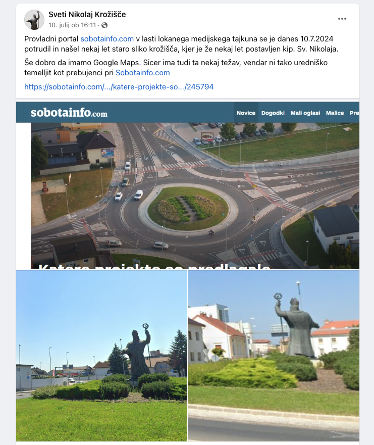 To je zmotilo ustvarjalce Facebook strani Sveti Nikolaj Krožišče, kjer so v zapisu - ki je ob objavi tega članka še vedno dostopen tukaj - bentili, da na fotografiji ni kipa.