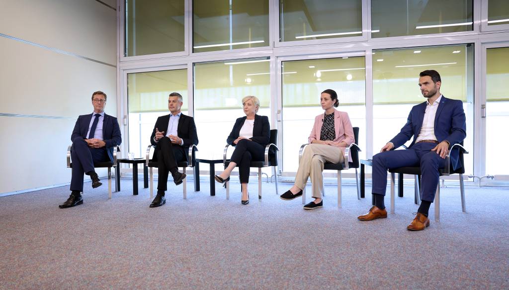 Stališča so soočili Romana Tomc, nosilka liste Slovenske demokratske stranke; Irena Joveva, nosilka liste Gibanja Svoboda; Matjaž Nemec, nosilec liste Socialnih demokratov; Matej Tonin, nosilec liste Nove Slovenije; in Vladimir Prebilič, nosilec liste Stranke Vesna.