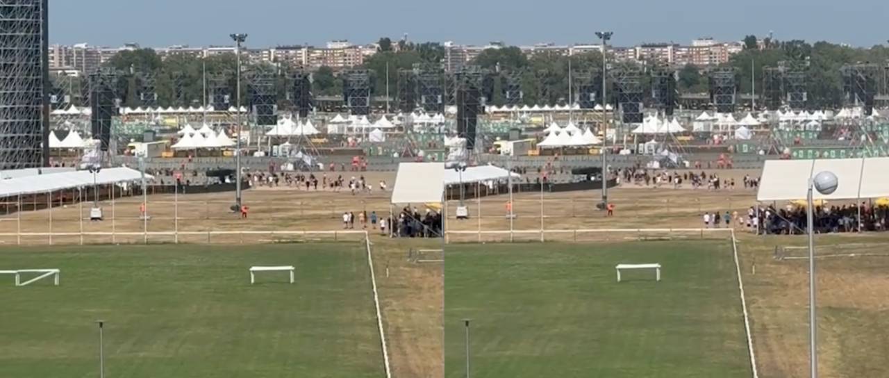 Na posnetkih, ki jih delijo uporabniki družbenih omrežij, se vidi, kako velik del množice teče čez travnato površino neposredno proti osrednjemu odru, da bi si zagotovili kar najboljši položaj za spremljanje koncerta.